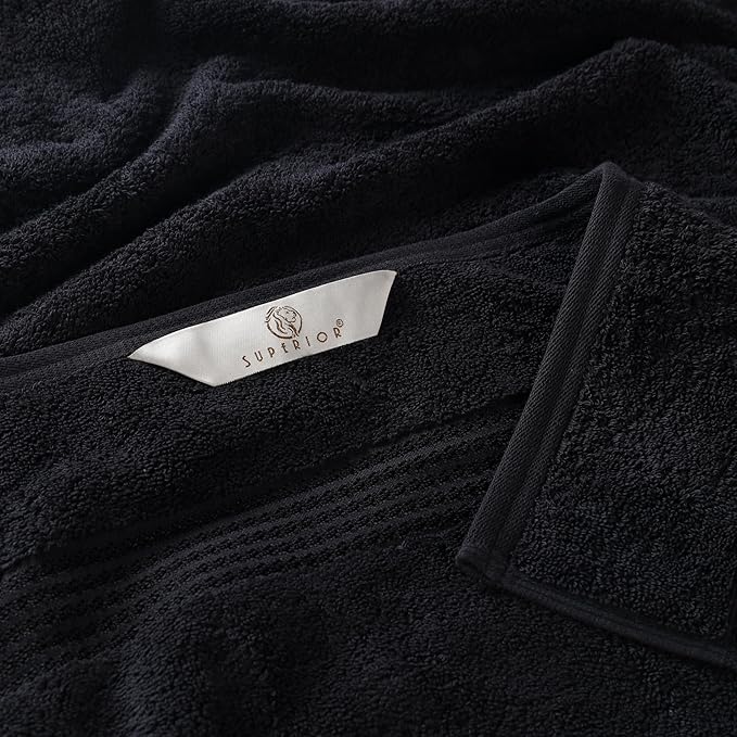 Superior Egyptian Cotton 6-Piece Towel Set, Bathroom Essentials, Towels For Bathroom, Apartment, Airbnb, Guest Bath, Face, Hand, Bath Towels, Washcloths, Absorbent, Fast Drying, Black