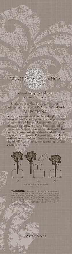 Zodax Grand Casablanca Porcelain Oil Diffuser - Home Fragrance Oil Diffuser Ideal for Living Room, Bathroom, Office - Flower Design - Gift Box Packaging Included - Versailles Tuberose - 6.76 Oz.