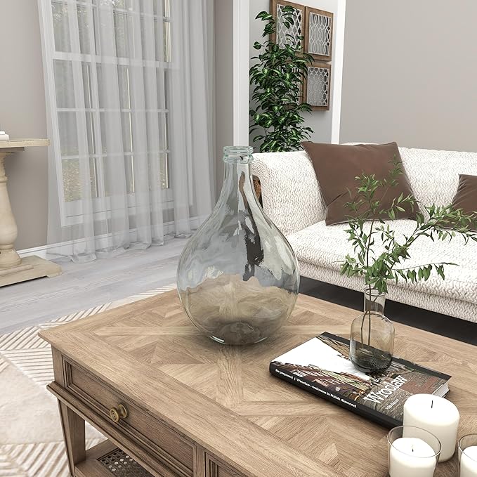 Deco 79 Recycled Glass Handmade Decorative Vase Spanish Bottle Centerpiece Vase, Flower Vase for Home Decoration 11" x 11" x 17", Blue