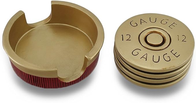 Shotgun Shell Coaster Set, Red/Gold by HomeWetBar