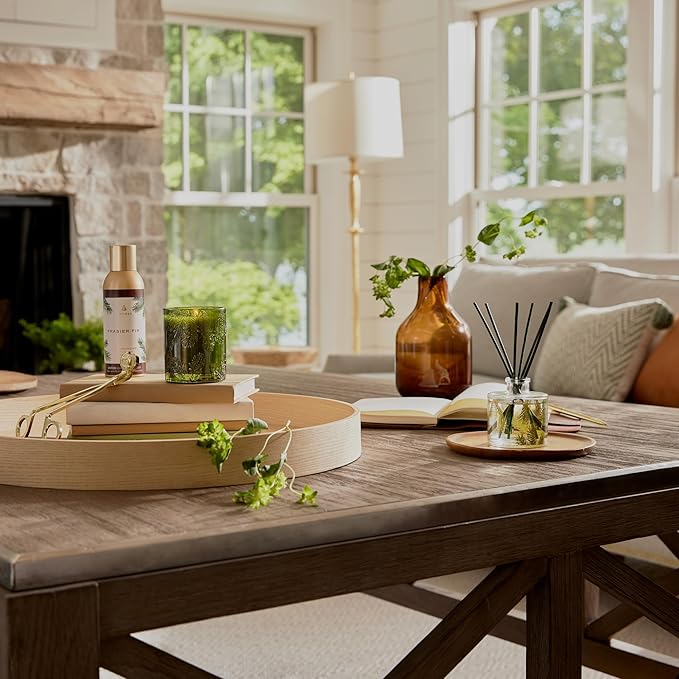 - Thymes Home Fragrance Mists: These air freshener sprays help with airborne odors; spray the bathroom, kitchen, or any other room to complement your winter home decor with the iconic Frasier Fir scent. These flameless fragrance options are made in the USA with globally sourced components.