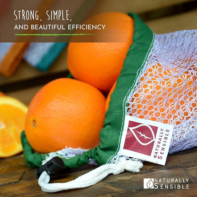 - Bring On the Dragon Fruit. As you head for the grocery store or farmer’s market, you want to know your eco-friendly produce bags are ready for anything. Naturally Sensible Reusable Bags are made with high-quality mesh and secured with uncommonly strong cotton fabric hems. They cinch up securely with premium pop-locks and drawstrings. These totes are beyond ready for every trip.