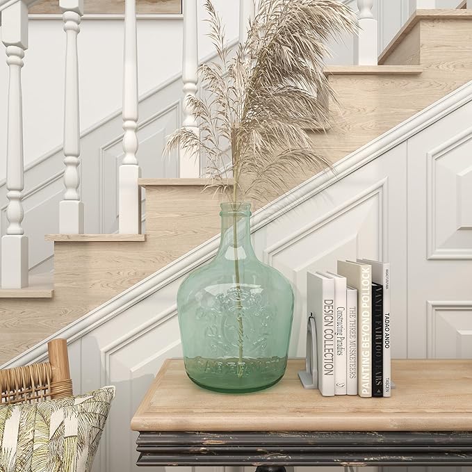 Deco 79 Recycled Glass Handmade Decorative Vase Spanish Bottle Centerpiece Vase with Cabernet and Scroll Design, Flower Vase for Home Decoration 12" x 12" x 17", Clear