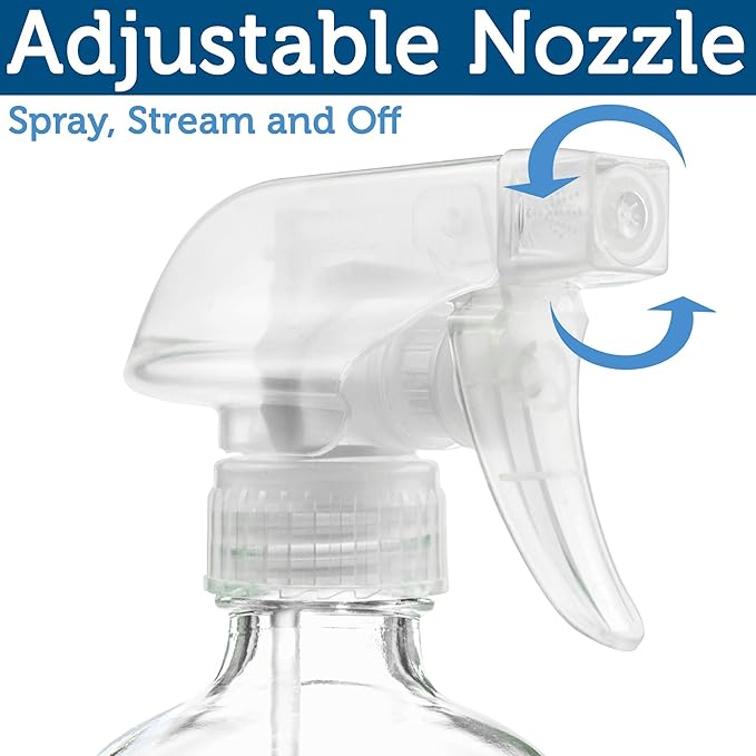 Sally's Organics® Empty Clear Glass Spray Bottles - Refillable 16 oz Containers for Essential Oils, Cleaning Products, Aromatherapy, Misting Plants, or Cooking - Sprayer with Mist and Stream - 2 Pack