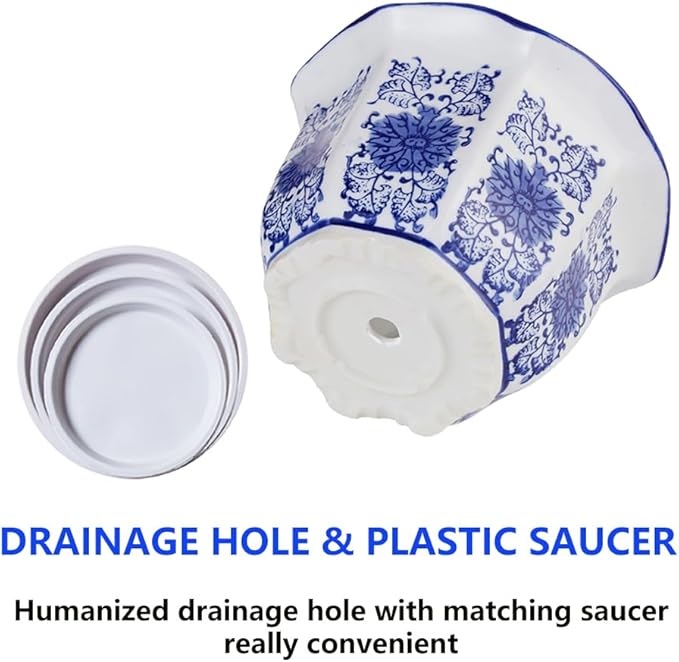 - Drainage Holes and Plastic Saucers: Planters for indoor plants with drainage in the bottom to drain the stagnant water and the matching saucer is convenient for keeping water away from your furniture