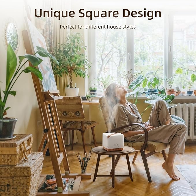 - Greatly Improves Living Space: Besides its uses in aromatherapy, this essential oil diffuser also functions as a humidifier. Use it to improve your home's atmosphere, cover the smell of pets or smoking, and protect your family from excessively dry season, static electricity, and more!