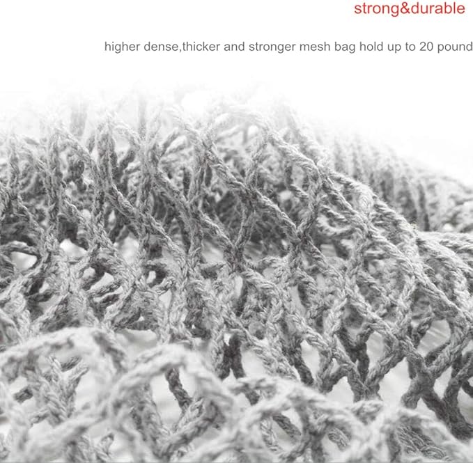 - [ECO-FRIENDLY]:Mesh bags are made from pure cotton. With ultra fine yet strong mesh cotton, these net bags can safely hold all your produce. They would be the best alternative to single-use plastic bags, paper bags, nylon produce bags for shopping purpose. Bio-degradable material, reusable, and comes in zero plastic packaging-makes this product perfectly fulfills your desire for a zero-waste lifestyle.