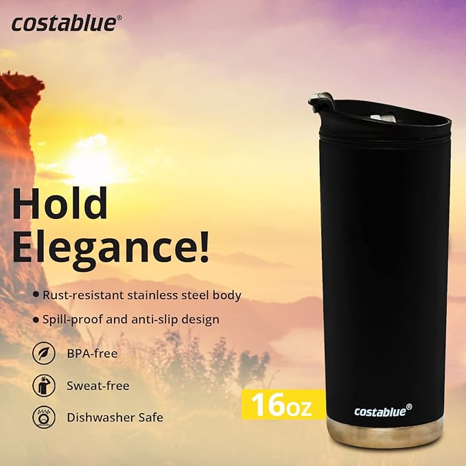 - THERMAL WALL INSULATED COFFEE CUP: Costablue coffee tumbler is your everyday companion, insulated with a double-wall vacuum which helps your drinks to keep cool or warm for a long time. Keep your beverages hot for 5 hours and cold for 12 hours. Easy to carry anywhere you want
