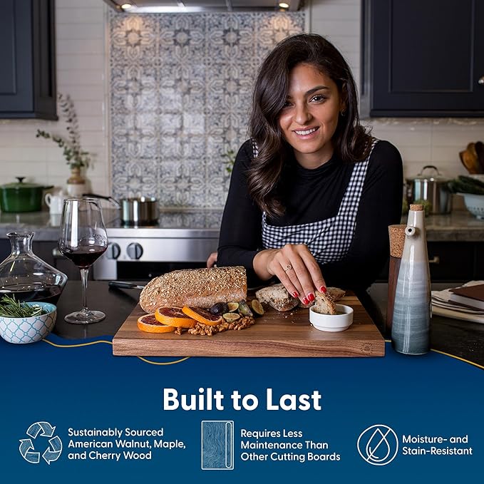 Sonder Los Angeles, Large Walnut/Cherry/Maple Wood Cutting Board for Kitchen, Charcuterie Wooden Board, Sorting Compartment, Reversible 17x13x1.1 in (Gift Box Included)