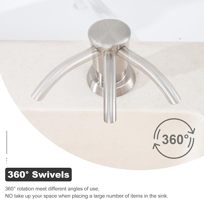 - Multifunction: Suitable for liquid soap, lotion or detergent in kitchen and bathroom. 360 swivel meet all angles of use, and will not take up your sink space