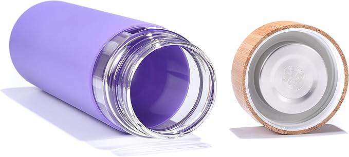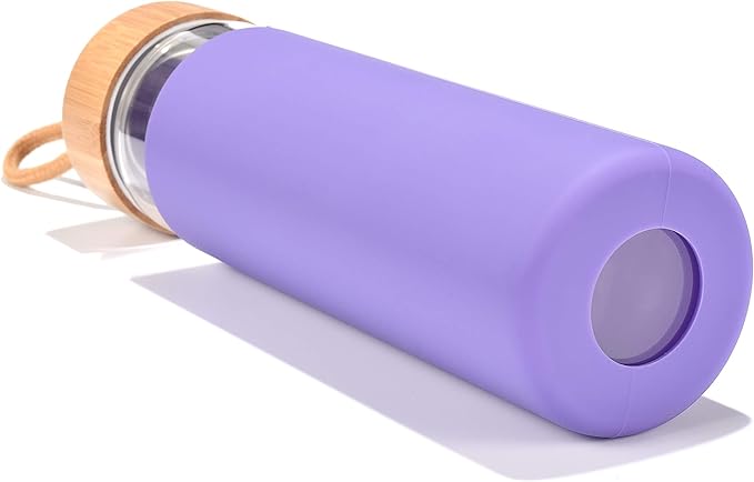 - RAW & NATURAL BAMBOO LID MEETS SCIENCE - Forget About Leaking Bottle Caps Ruining Your Furniture: Scared of your little fur buddies running around the house, flipping your travel water bottle, and creating a mess? Yomious reusable water bottle has a natural bamboo lid that is effectively wide mouth designed with a stainless steel insert and a commercial-grade Silicone O-Ring seal to give you spill-proof glass drinking bottles with lids.