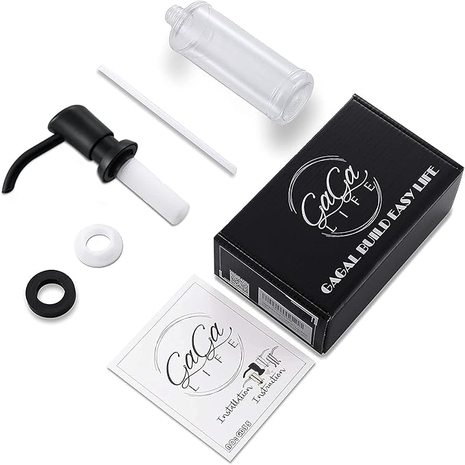 GAGALIFE Built in Sink Soap Dispenser or Lotion Dispenser for Kitchen Sink, Matte Black ABS Pump Head, with 17 Ounce PET Large Soap Bottle