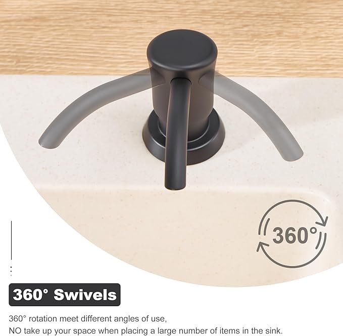 - Multifunction: Suitable for liquid soap, lotion or detergent in kitchen and bathroom. 360 swivel meet all angles of use, and will not take up your sink space