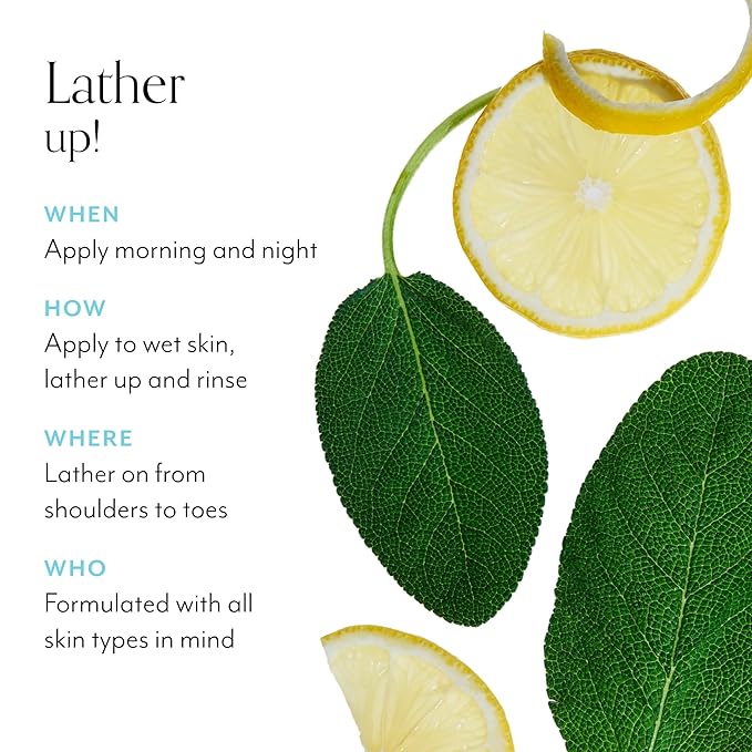 - HOW TO APPLY: Apply to wet skin, lather up and rinse. Follow with Lemon & Sage Body Butter for the ultimate experience.