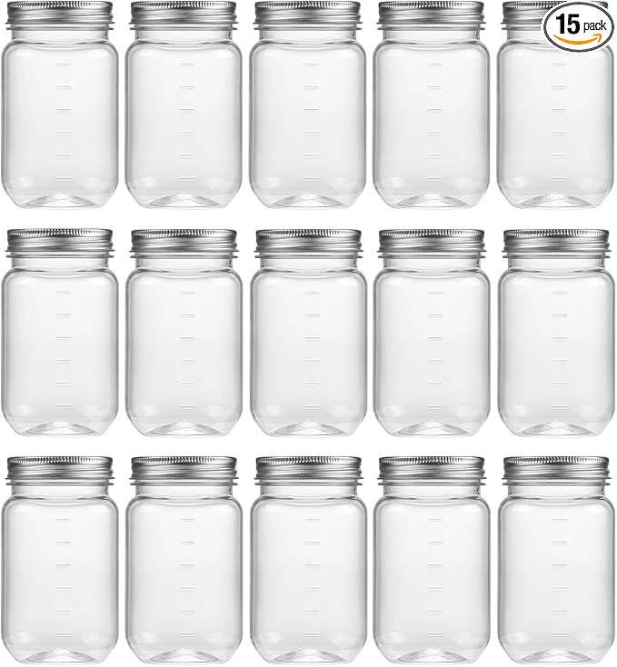 - Noveinks 16 oz CLEAR PLASTIC JAR : The package includes 15 pack 16 oz clear plastic jars with metal lids; Plastic Jar Product measures 2.8 Inches Diameter, 5.3 Inches Height.
