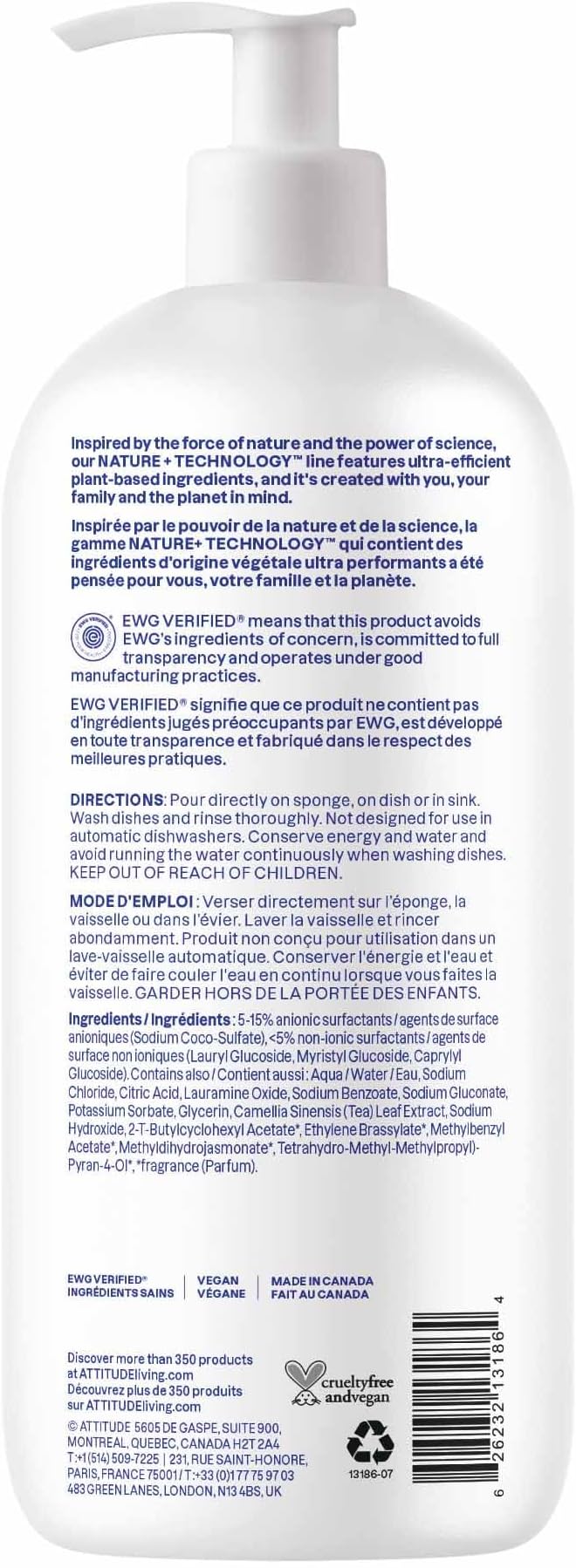 ATTITUDE Dish Soap, EWG Verified, Plant-Based & Vegan Dishwashing Liquid, Naturally Derived, Pink Grapefruit Scent, 33.8 Fl Oz