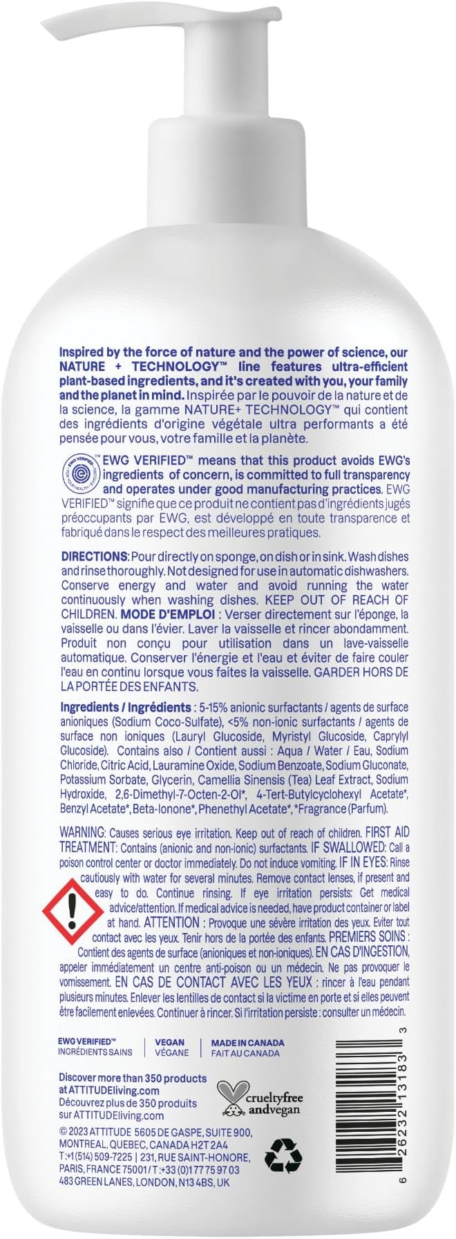 ATTITUDE Dish Soap, EWG Verified, Plant-Based & Vegan Dishwashing Liquid, Naturally Derived, Wildflowers Scent, 33.8 Fl Oz
