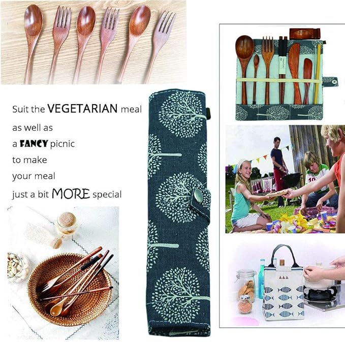 - ✿Portable & Stylish Travel Utensils With Case: These spoon and fork set comes with durable canvas pouch, Easy to storage on your lunch bag; suits the vegetarian meal as well as a fancy picnic to make your meal just a bit more special.