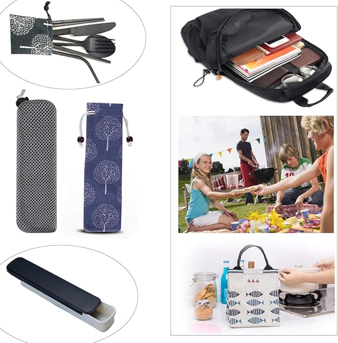 - ✿ Two Alternative Portable Ways & 4 Alternative Color: Comes with durable canvas pouch and carrying case, Easy to storage on your lunch bag; Available black, gold, multi-color and silver, which you can choose according to your meal style, suits a casual meal as well as a fancy picnic to make your meal just a bit more special.
