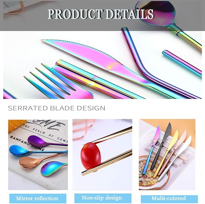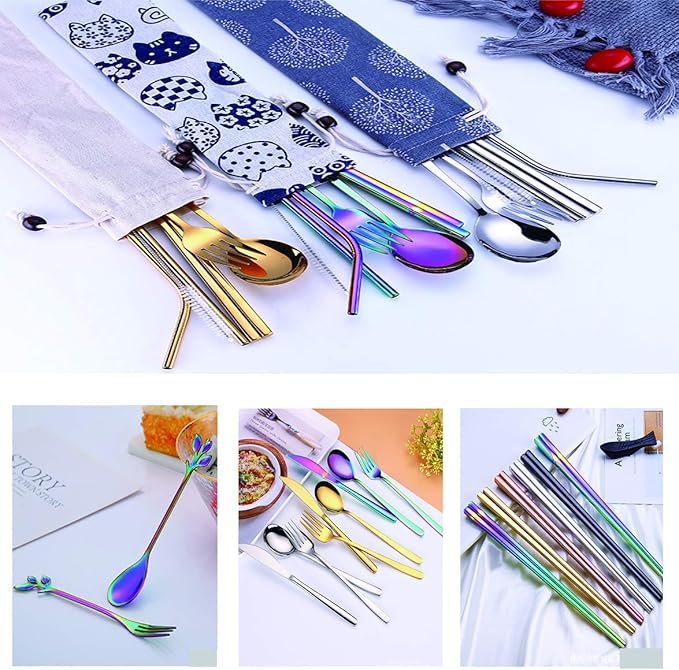 - ✿ Eco-Friendly & Multifunctional Reusable Cutlery Set: Say no to throwaway or plastic flatware, it is an environmental protection way to use reusable Silverware. Perfect for your home use, office, restaurant, hotel, Also great for outdoor activities, travel, camping, picnic, etc.