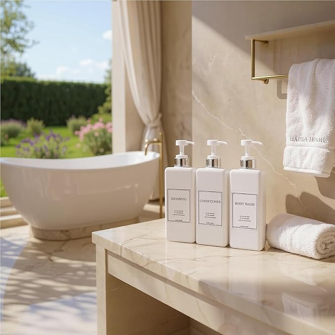 - ELEGANT & MODERN DESIGN — Elevate your bathroom decor with HARRA HOME bathroom accessories that create an instant hotel-style bathroom aesthetic. These decorative pump dispensers transform any shower and sink area into a modern bathroom sanctuary without breaking the budget. Perfect bathroom organizers that eliminate clutter from multiple bottles while adding elegance to your space.