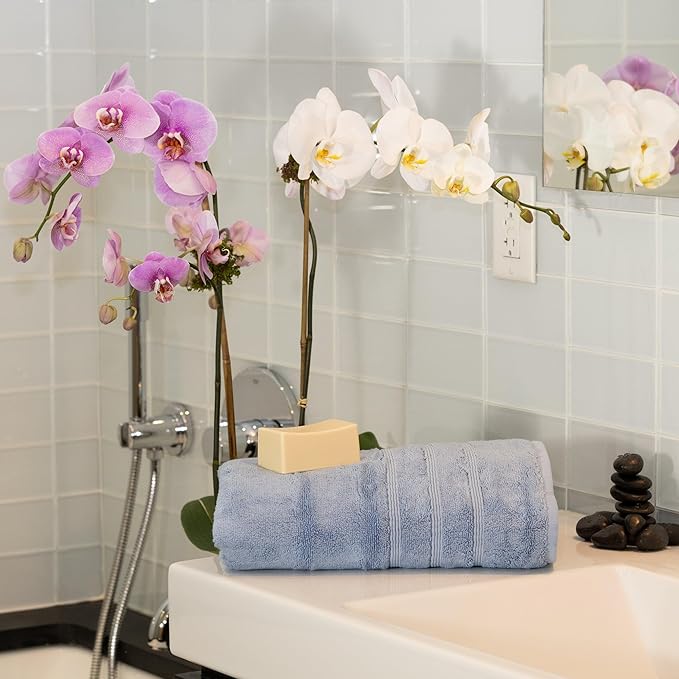 - 50% Viscose Made From Bamboo & 50% Aegean Turkish Combed Cotton, 700 GSM, Dobby Border, 2-ply Twisted Yarn – Carefully crafted with optimal weight and thickness to soak up water and comfort your skin. Double twisted yarns are spun out of extra-long fibers to ensure superior quality and performance. Buy individually or in Family Multi-Packs.