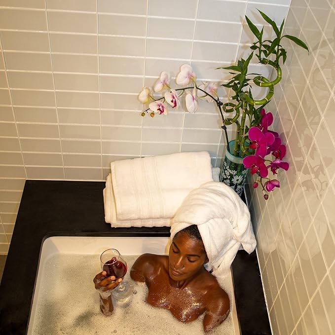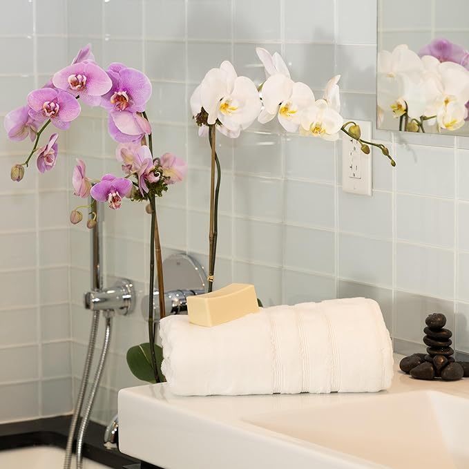 - 50% Viscose Made From Bamboo & 50% Aegean Turkish Combed Cotton, 700 GSM, Dobby Border, 2-ply Twisted Yarn – Carefully crafted with optimal weight and thickness to soak up water and comfort your skin. Double twisted yarns are spun out of extra-long fibers to ensure superior quality and performance. Buy individually or in Family Multi-Packs.