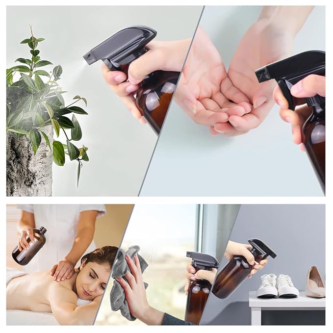 - Multifunctional: The glass bottles can fill with whatever liquid you want. Perfect for homemade cleaning solutions, hair moisturizing spray, floor or carpet cleaner, kitchen cleaner, spraying plants, pet spray, ironing, window cleaners and so on.