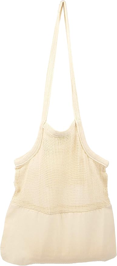 - β MULTI-PURPOSE CARRYING BAG - Enjoy the tons of versatile uses you'll get out of this woven mesh bag. Fantastic for carrying and storage of fruits & veggies, grocery items, farmer's market selections, bread and baked goods. It also makes a perfect beach bag, tote bag, clothes shopping bag, pool & activities bag, toy storage, and gym bag.