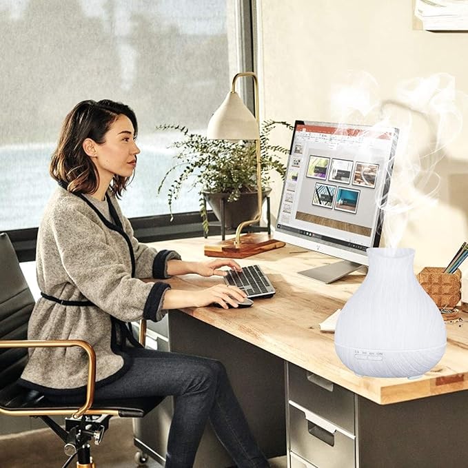 BZseed Aromatherapy Essential Oil Diffuser 550ml 12 Hours White Wood Grain Aroma Diffuser with Timer for Large Room, Home, Baby Bedroom, Waterless Auto Shut-Off, 7 Colors Lights Changing