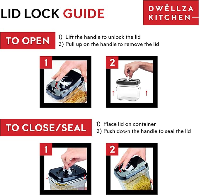 - Enjoy Your Meal With Fresh Food: Keep Your Foods Fresh with Our Easy to Use Airtight Lid-Lock Mechanism. No Dealing with Flimsy Pumps. Our Pantry Storage Containers for Organizing Create an Airtight Seal by Simply Pushing Down the Ring on The Lid. Lift the Ring and Push Up Whenever You Want to Open the Airtight Containers. The Airtight Seal Is So Secure You Can Store Liquids Without Ever Worrying About Leaks!