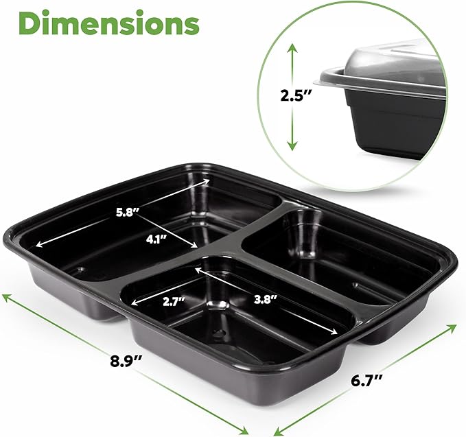 - Three Compartment Design: Each container features three compartments, allowing you to separate and organize different food items, ensuring balanced meals and easy portion control.