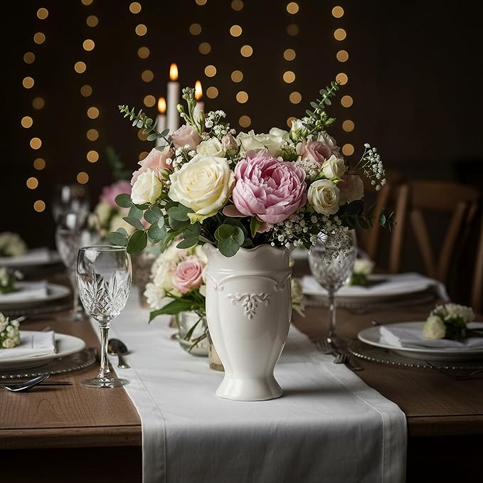 hjn White Ceramic Vase- French Flower Vase for Decor Small Vintage Vases for Flowers/Home Decoration/Kitchen/Table/Living Room/Shelf/Mantel/Office-Height-6.8"