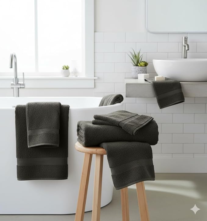 - Premium Quality: Elevate your bathing experience with a pack of 6 luxurious grey bath towels, made from 100% ultra-soft and highly absorbent cotton.