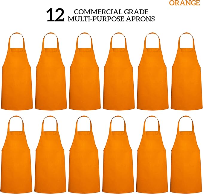 GREEN LIFESTYLE 12 Pack Professional Chef Apron – Grilling Aprons for Men, Waterproof Cooking Apron for BBQ, Work or Restaurant Use, Kitchen Aprons for Women – Orange, No Pockets