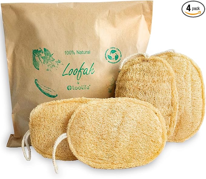 Natural Loofah Exfoliating Sponge (4 Pack) - Organic Body Scrubber - Biodegradable Shower Luffa