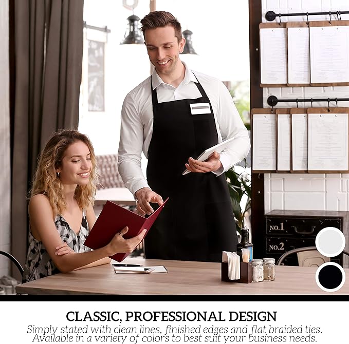 - Multiple Colors And Configurations – These aprons for men and women come in a variety of vibrant and classic colors, with options for 2-pocket, 3-pocket, or no-pocket styles. Available in packs of 2, 12, or 120, each apron is designed to meet the needs of individuals, teams, or businesses.