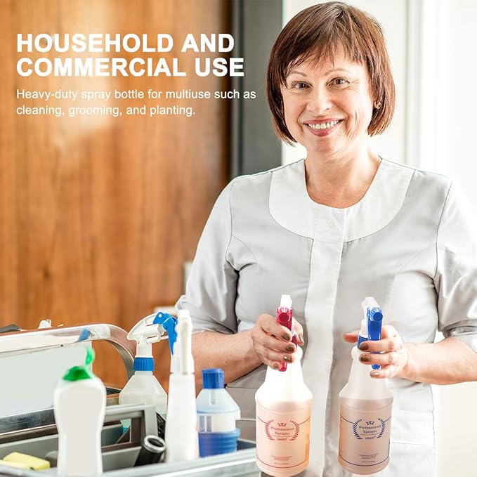 - Household Commercial Industrial Uses - Our plastic spray bottles is for multi purpose uses, each bottle is BPA-free, use them for food spraying, cleaning solutions around the house, pet, cat, lawn and garden, misting and watering plants, succulents, herbs, ironing, laundry, car cleaning, janitorial. Make your own homemade diy cleaner mister or just use with water to cool yourself.