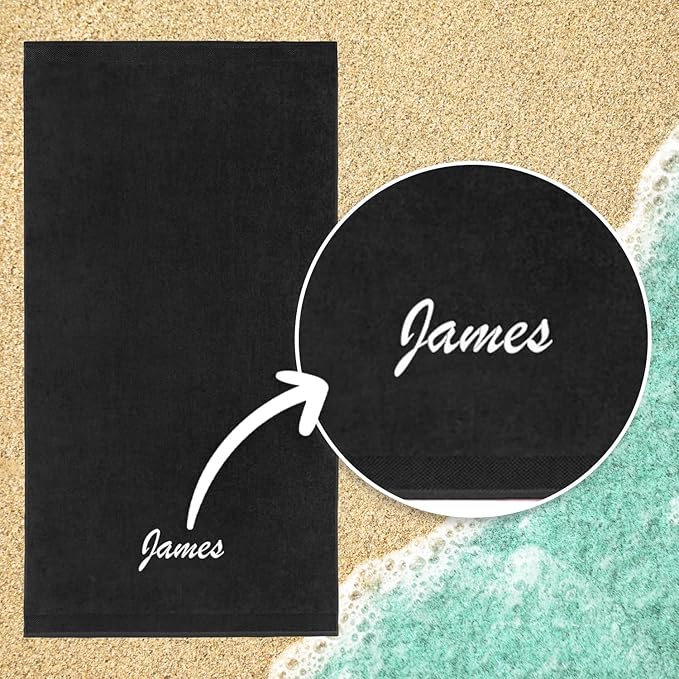 Kaufman - Personalized Velour Beach and Pool Towel 100% Cotton 30in X 60in Solid Color Bath Towel Embroidered (Black)