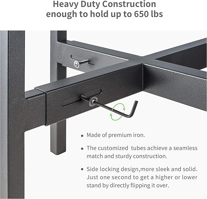 - 【2 Heights Display】- Side locking design, more sleek and solid. Just one second to get a higher or lower stand by directly flipping it over. 10 1/4” or 6” from the ground? You decide!