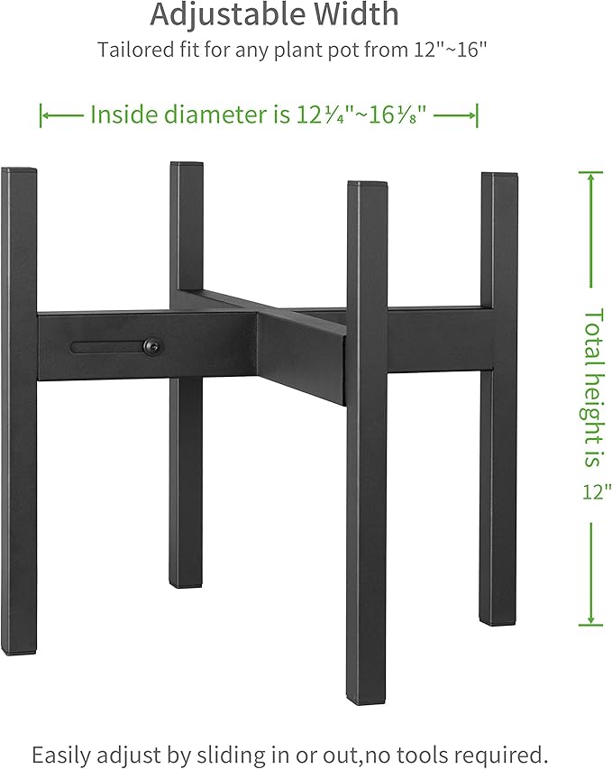 FaithLand Plant Stand, Adjustable Size Fits 12 13 14 15 16 Inches Large Plant Pot, Metal Planter Stand, Mid Century Expandable Plant Holder Indoor Outdoor, Adjustable Width: 12”-16.1” - Easy Assembly