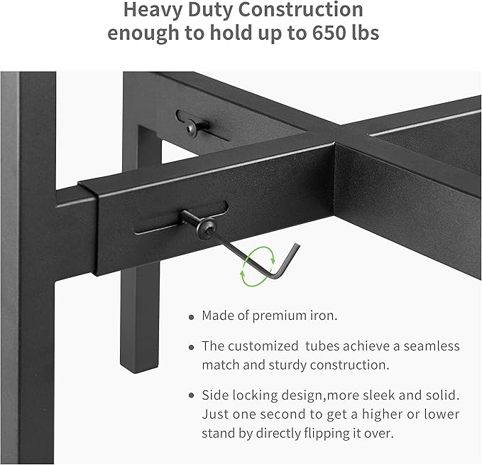 - 【2 Heights Display】- Total Height: 12”. Side locking design, more sleek and solid. Just one second to get a higher or lower stand by directly flipping it over. 8 1/2” or 5” from the ground? You decide!
