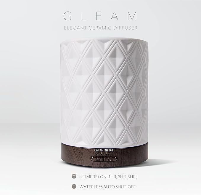 - Ceramic Essential Oil Diffuser with 7 color Night Light is the perfect match, it’s the best way to present the gleam from the ceramic material. It’s a great companion for you to focus, study, yoga or sleep.