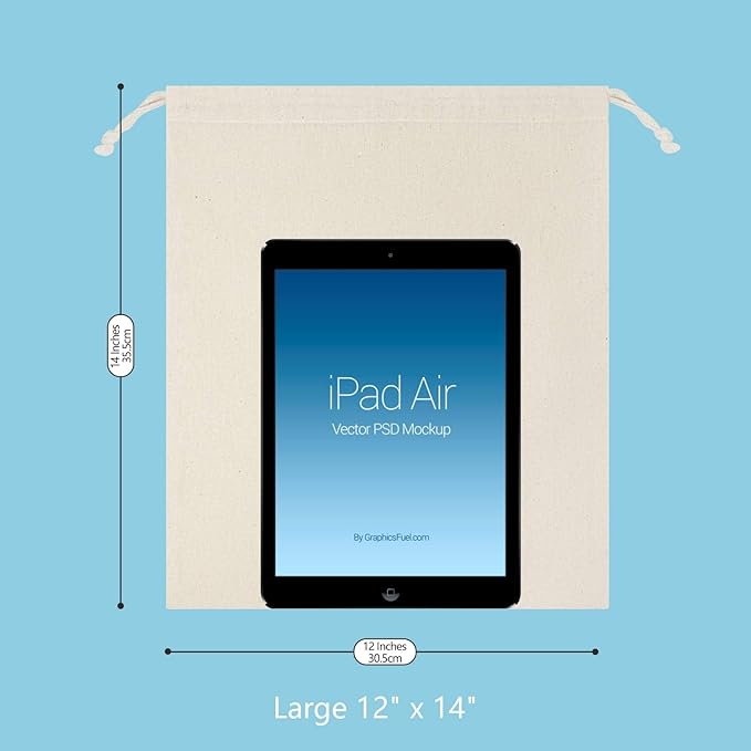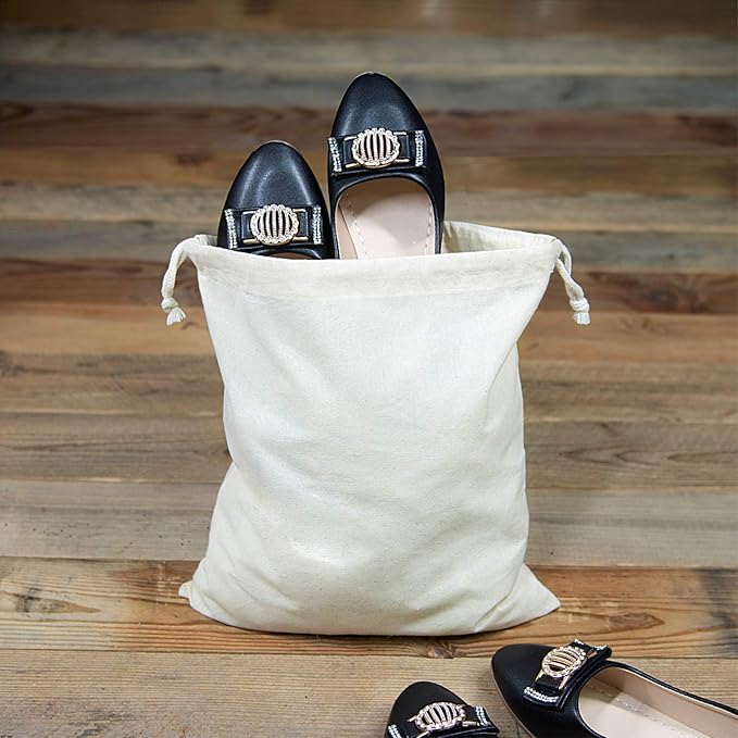 - DURABILITY: 12" x 14", made of 100% natural cotton, the stitches are fine and strong againt tearing. No matter the weight of the stored item, it will not tear or break easily. It's also extremely light at just 0.09 pounds, making it very portable.