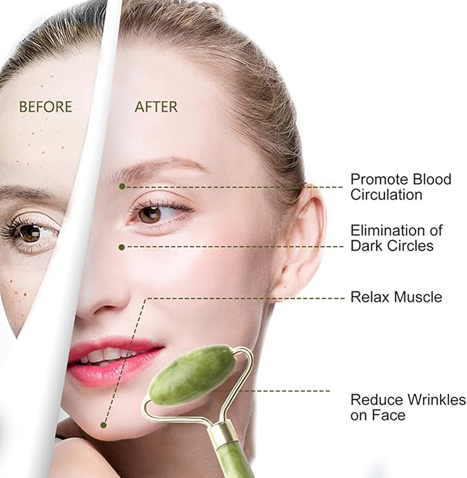 - 【GuaSha and Jade roller】 Gua Sha,a traditional oriental acupuncture therapy, helps to muscle tension relief,promote blood circulation,expel toxins. The skin care face massager tool requires ?no special skill to use,available for remove edema,reduce facial puffiness and firm your skin. Improve fine lines with upwards pressure while eliminating wrinkles and fine lines, help your skin look fresh and make it look dewy;nourish the skin and improve facial contour.