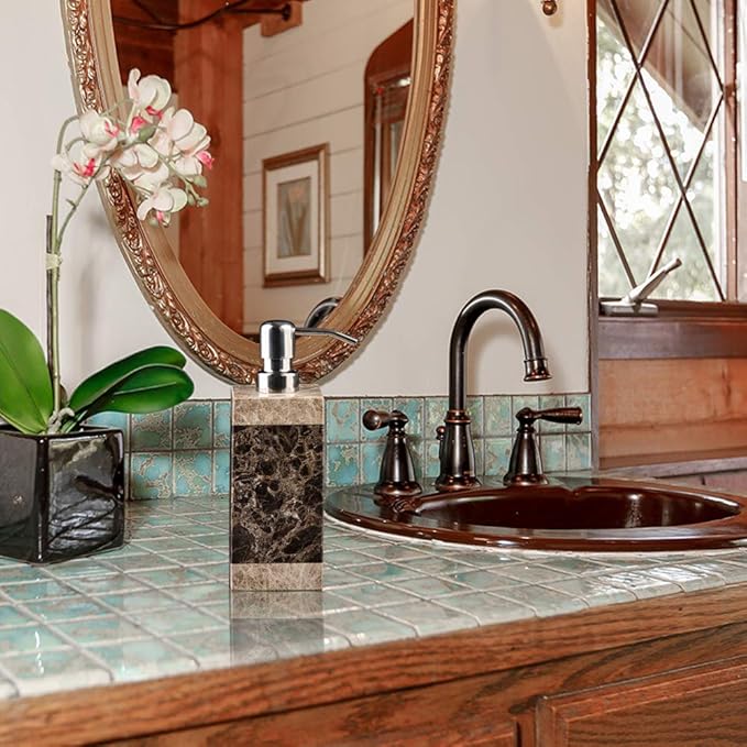 Hand Liquid&Lotion Soap Dispenser Pump Bottle Natural Marble for Kitchen Bathroom Countertop Laundry Room Holds Dish Soap Shampoo Laundry Liquid Shower Gel(Coffee Colour)