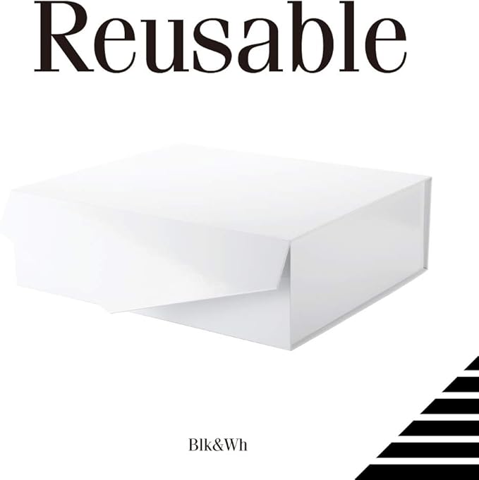 BLK&WH Extra Large Gift Box with Lid 16.3x14.2x5 Inches, White Gift Box Closure Lid for Clothes and Large Gifts (Glossy White)