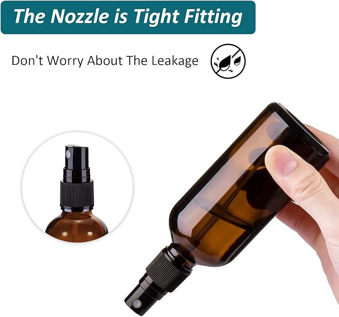 - GLASS SPRAY BOTTLES: Includes 4oz amber glass spray bottles x4, Funnel x1, Dropper x1, Label x4