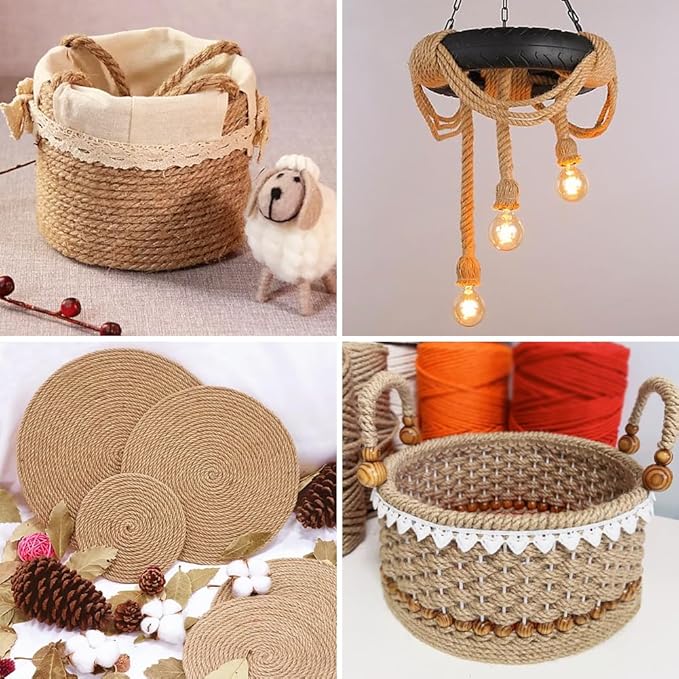 - THICK TWINE - 6mm (Approx. 1/4 inch) in thickness, the natural jute rope is tightly twisted and sturdy for your creative projects