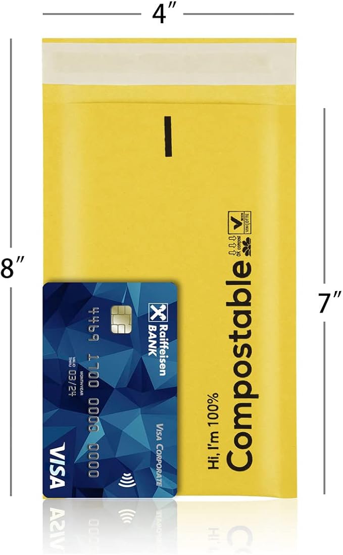 - 100% Biodegradable: our bubble cushioning wrap is made of PBAT and modified corn starch. The envelope is made of kraft. These poly bubble mailers are certified by BPI and OK compost, and meet the standards of ASTM 6400 and EN13432. They are non-toxic , BPA-free and generate less CO2 than traditional plastic.